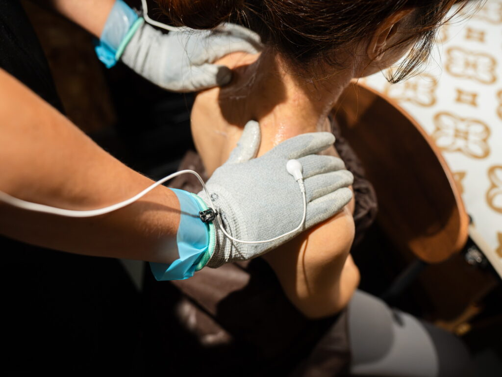 ラクリスとは新しい4D筋膜高速アプローチシステムで、立体的な施術を可能にし、微弱電流を用いて目的の筋肉や神経に正確に刺激を届けます。従来のEMSとは異なり、グローブを使って立体的なトリートメントが可能で、リラックスや筋肉疲労の緩和、運動パフォーマンスの向上、肌のハリやケアなど、幅広い用途に適しています。