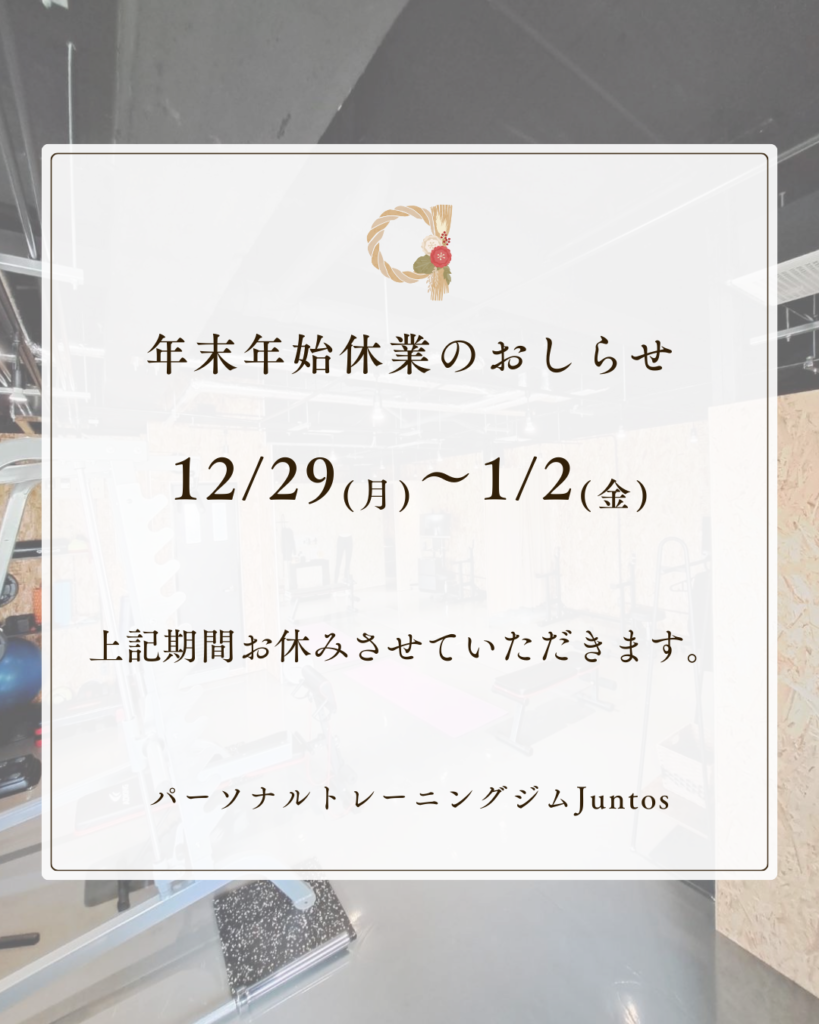 Juntosのトレーニングは、決まったメニューをこなすだけのものではありません。 お客様一人ひとりの骨格、ライフスタイル、そして「どうなりたいか」という目標を丁寧にヒアリングし、あなただけの「完全オーダーメイドプログラム」をご提供します。「自分史上、最高の身体」を手に入れ、自信に満ちた毎日を送ってほしい。 その場限りではない、あなたの人生に寄り添う”一生涯の健康パートナー”として、全力でサポートすることをお約束します。どんな小さなお悩みでも、まずはお気軽にご相談ください。 あなたにお会いできる日を、心から楽しみにしています。